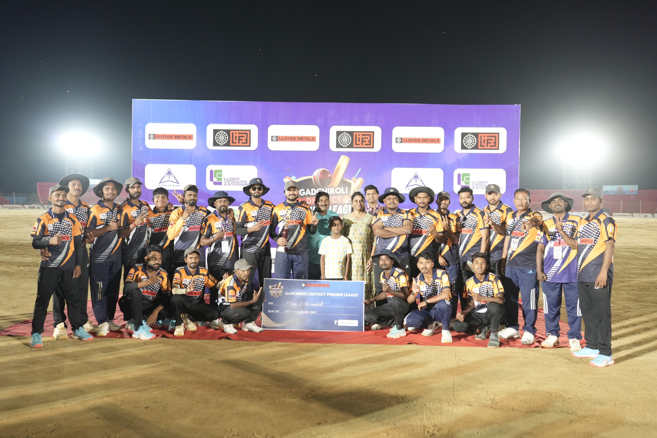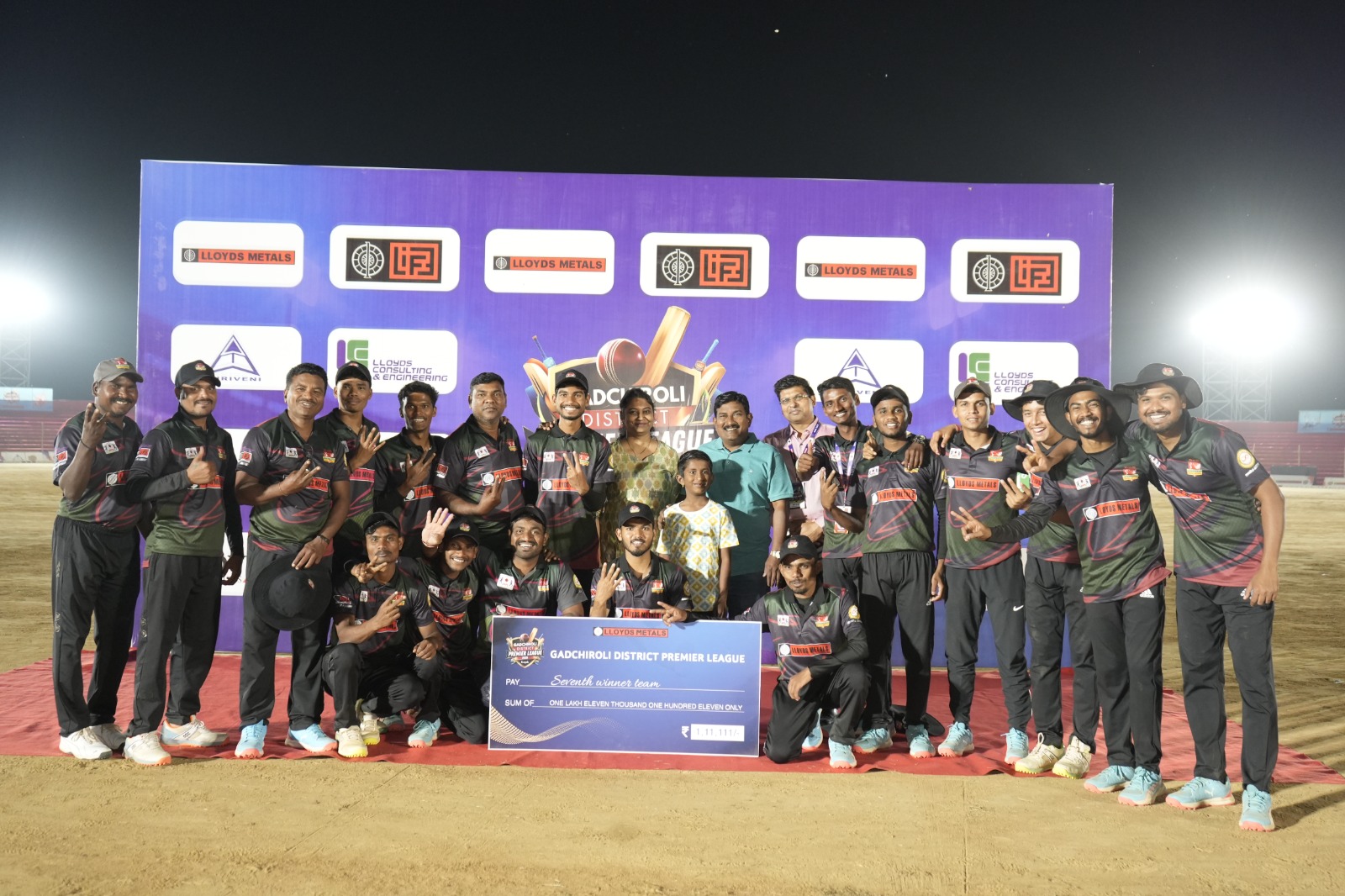 सामन्यानंतर धनौरा रॉयल रायनोस संघाला सन्मानपूर्वक 1,11,111 रुपयांचा धनादेश देण्यात आला.
