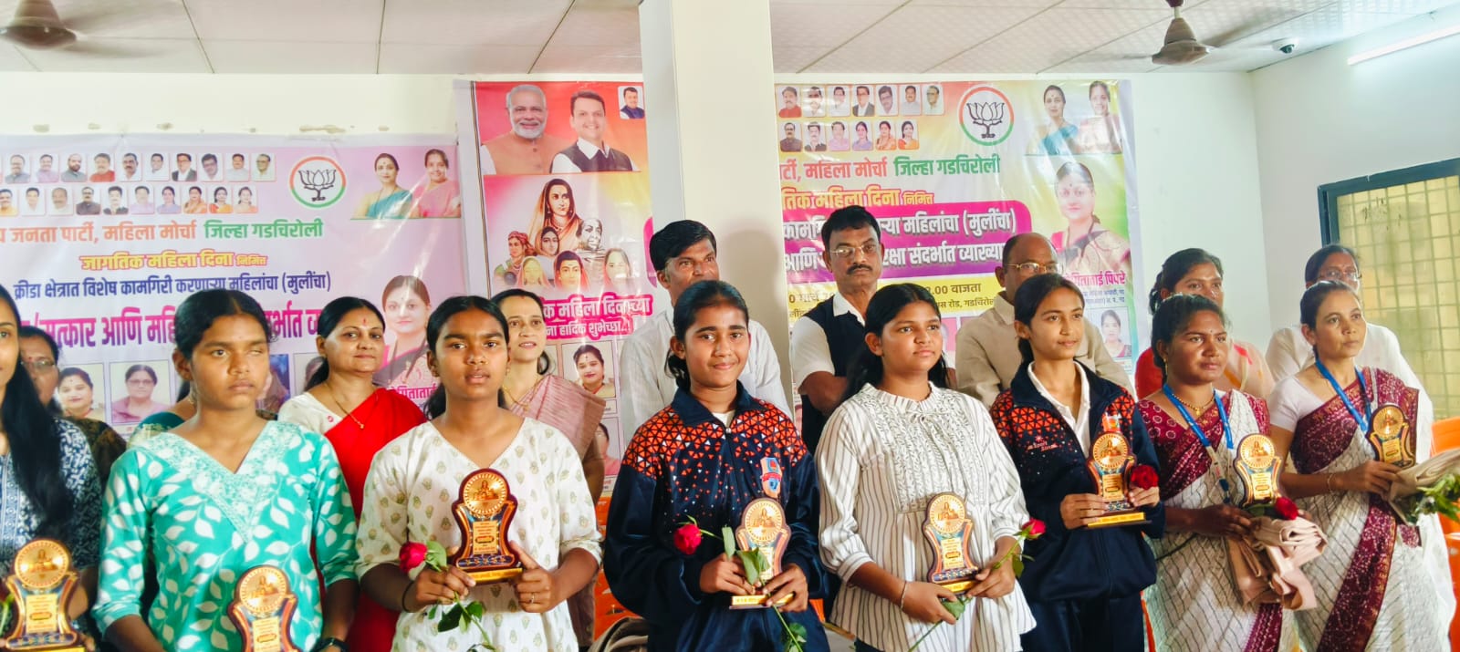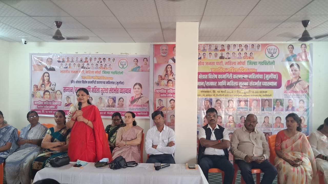 भारतीय जनता पक्ष महिला आघाडी, गडचिरोली जिल्हा यांच्या वतीने ८ मार्च जागतिक महिला दिनानिमित्त क्रीडा क्षेत्रात विशेष कामगिरी करणाऱ्या महिला व मुलींचा गौरव, महिला सुरक्षेबाबत मार्गदर्शन तसेच विविध उपक्रमांचे आयोजन करण्यात आले. हा कार्यक्रम आमदार डॉ. मिलिंद नरोटे यांच्या कार्यालयातील सभागृहात उत्साहात पार पडला.