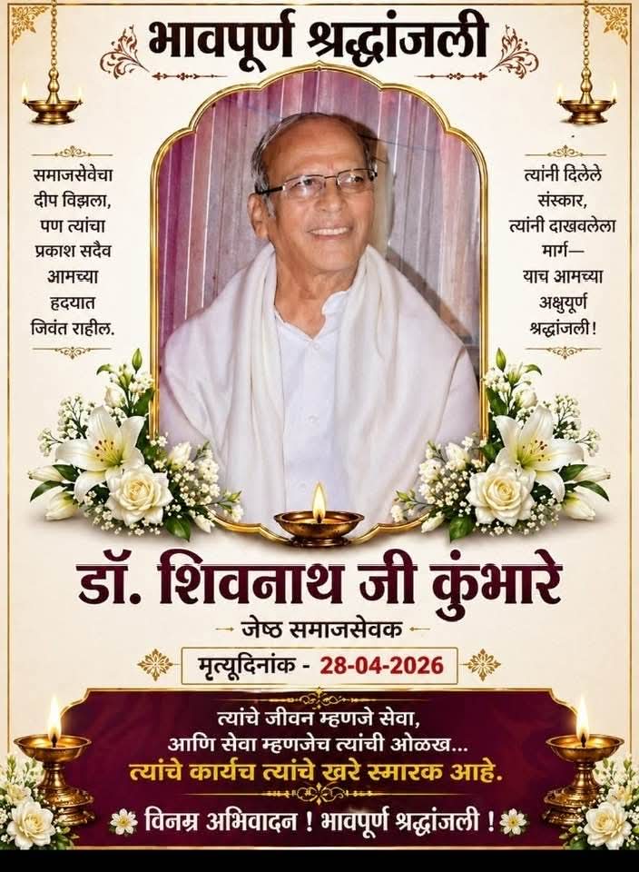 दुःखद : ज्येष्ठ समाजसेवक डॉ. शिवनाथजी कुंभारे यांचे निधन; परिसरात शोककळा
